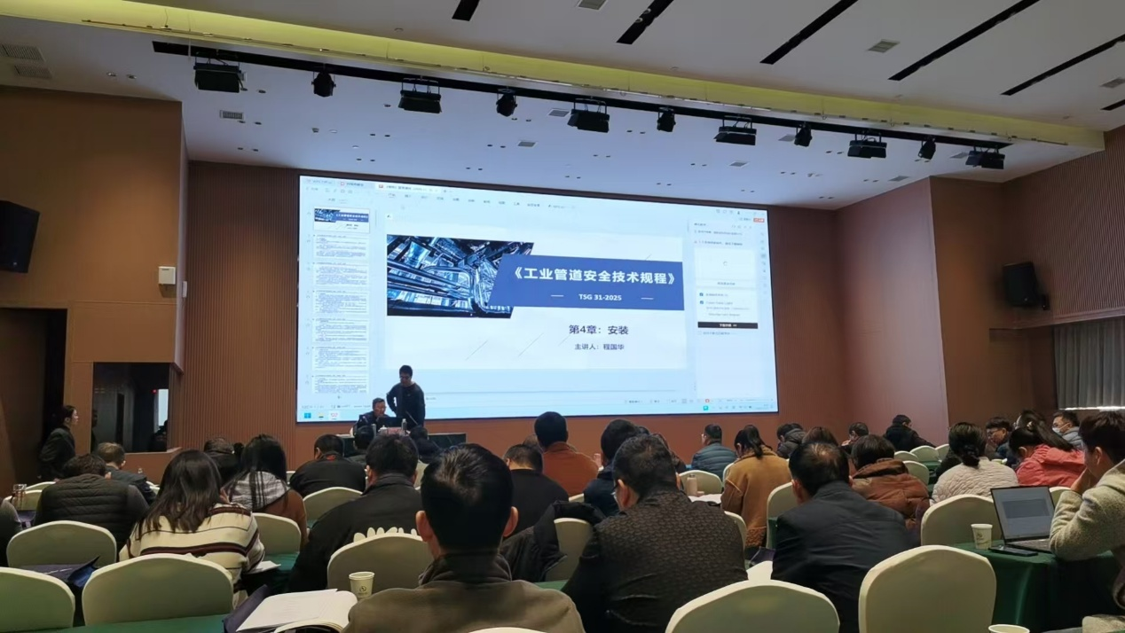 《工业管道安全技术规程》(TSG31-2025)作为整合修订原多项安全技术规范后的行业新规,于 2025 年 9 月 22 日批准发布,2026 年 1 月 1 日起正式实施。该规程进一步明确了工业管道适用范围,新增动力管道、制冷管道、非金属管道等专项安全技术要求,完善了设计、安装、检验、使用全流程管理规范,对压实企业安全主体责任、健全安全监管制度具有重要意义。此次宣贯培训特邀规程核心起草专家授课,系统解读了新规修订背景、核心变化及实施要点,重点针对安装环节的焊接工艺、热处理、无损检测、耐压试验等关键技术要求进行深度解析,为企业准确理解和执行新规提供了权威指导。