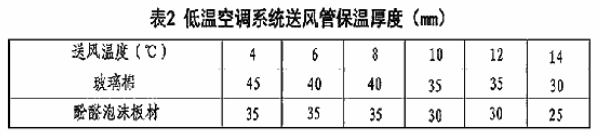3.1.4低温空调系统运风管保温厚度见表2。