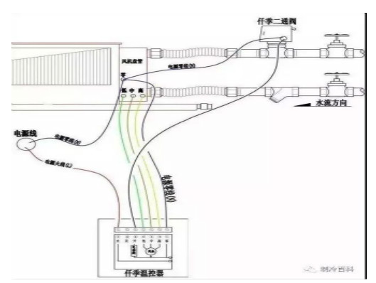 ◆ 蓝线为零线(N),盘管、二通阀、温控器串联;