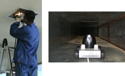 (1)用清洗设备中的摄像监控系统对清洗前后的风道实行监控录像,以目测形式直接检测风道清洗效果。