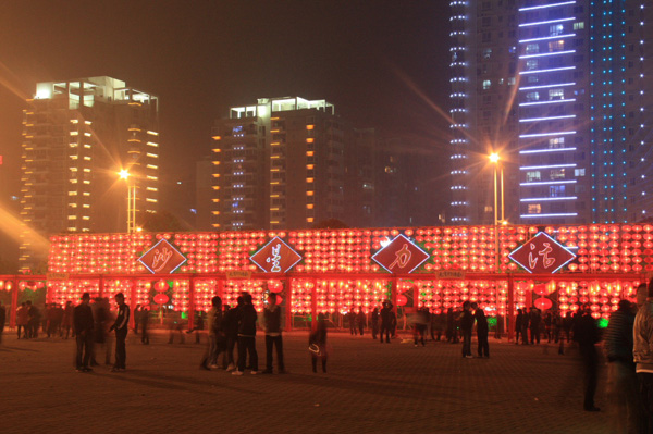 图为春节期间星沙通程广场亮化工程盛况
