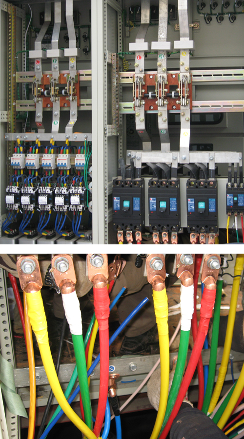 电气控制柜主要由金属柜体、开关设备、继电装置、信号装置、测量仪表、保护电器和辅助设备组成,构成低压配电装置。正常运行时可借助手动或自动开关接通或分断电路。故障或不正常运行时借助保护电器切断电路或报警.借测量仪表可显示运行中的各种参数,还可对某些电气参数进行调整,对偏离正常工作状态进行提示或发出信号。
