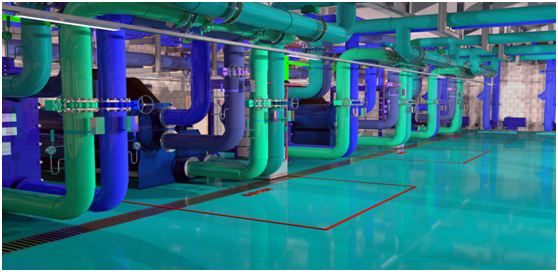 1) 首先根据原设计建筑、结构以及机电图纸创建机房三维模型;