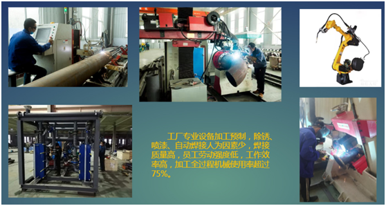 预制装配化施工可以减少50%的现场操作工人,降低劳动力成本,安装工期从1个月压缩到了最快3天完成,降低时间成本,并且管道加工从项目现场转移;到工厂,以数字机械化操作代替人工操作,对支架加工中的打孔以及可重复生产的构件,形成加工流水线,都极大提高了生产效率和施工质量。而现场装配更多的使用机械设备,减少了现场作业人员。组合式构件,装配式、机械化的安装,对安装人员的技术要求低,减少高空作业和辅助设施的架设,在提高技术水平和效率的同时,更保障了施工人员的安全,减少了现场的切割和焊接,可避免污染和安全问题。