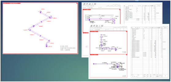 3) 导出管道分段加工图纸和下料图,并将图纸交付工厂照图加工预制,加工完成后按照现场施工节点逐次进场,进行装配。