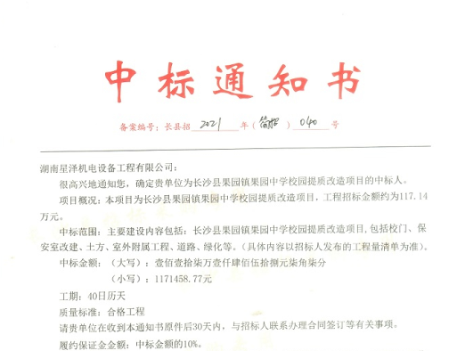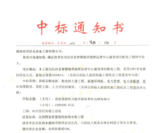 “尊敬的湖南星泽 机电工程有限公司,很高兴地通知您......"