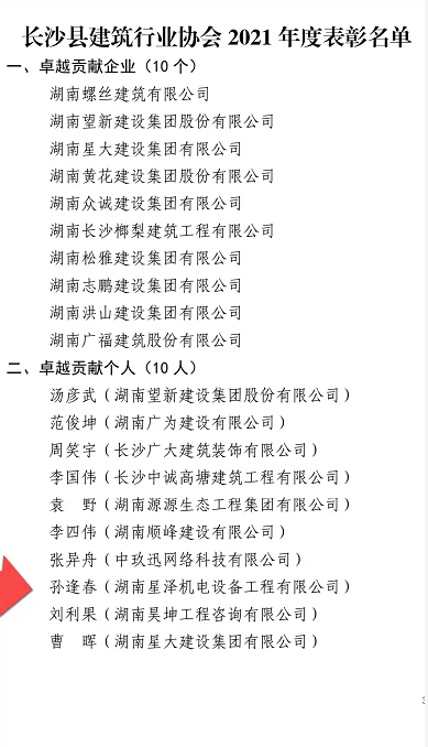 匠心建造 方能卓越——孙逢春总经理荣获长沙县建筑协会“卓越贡献个人奖”获奖感言