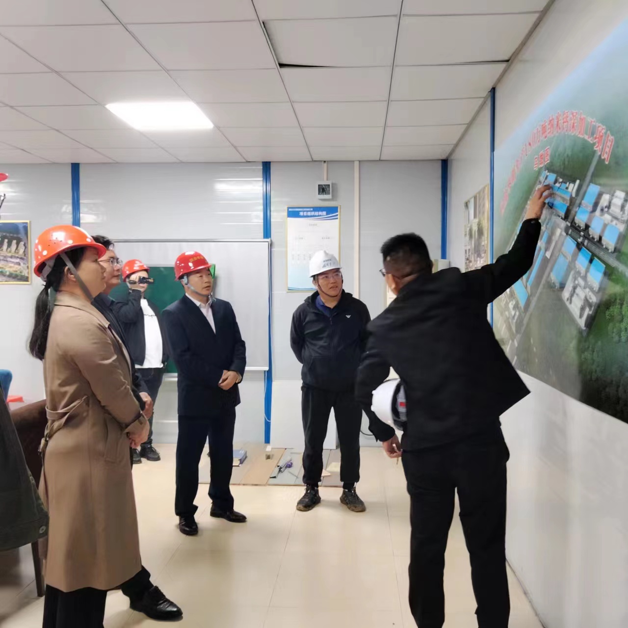 2022年10月28日一早,公司领导继昨天研讨学习二十大精神后,蹄疾步稳,求真务实,为创新发展好工业现代化产业体系的机电安装业务市场,驱车500公里来到湖北省黄冈市武穴国鼎纳米钙新材料项目建设基地施工现场。虽然舟车劳顿而不竭其力,项目部和建设方总经理热情迎接公司领导莅临指导,项目经理石佳梁、甘涛和吴高工一边引领现场察看,一边介绍项目情况。