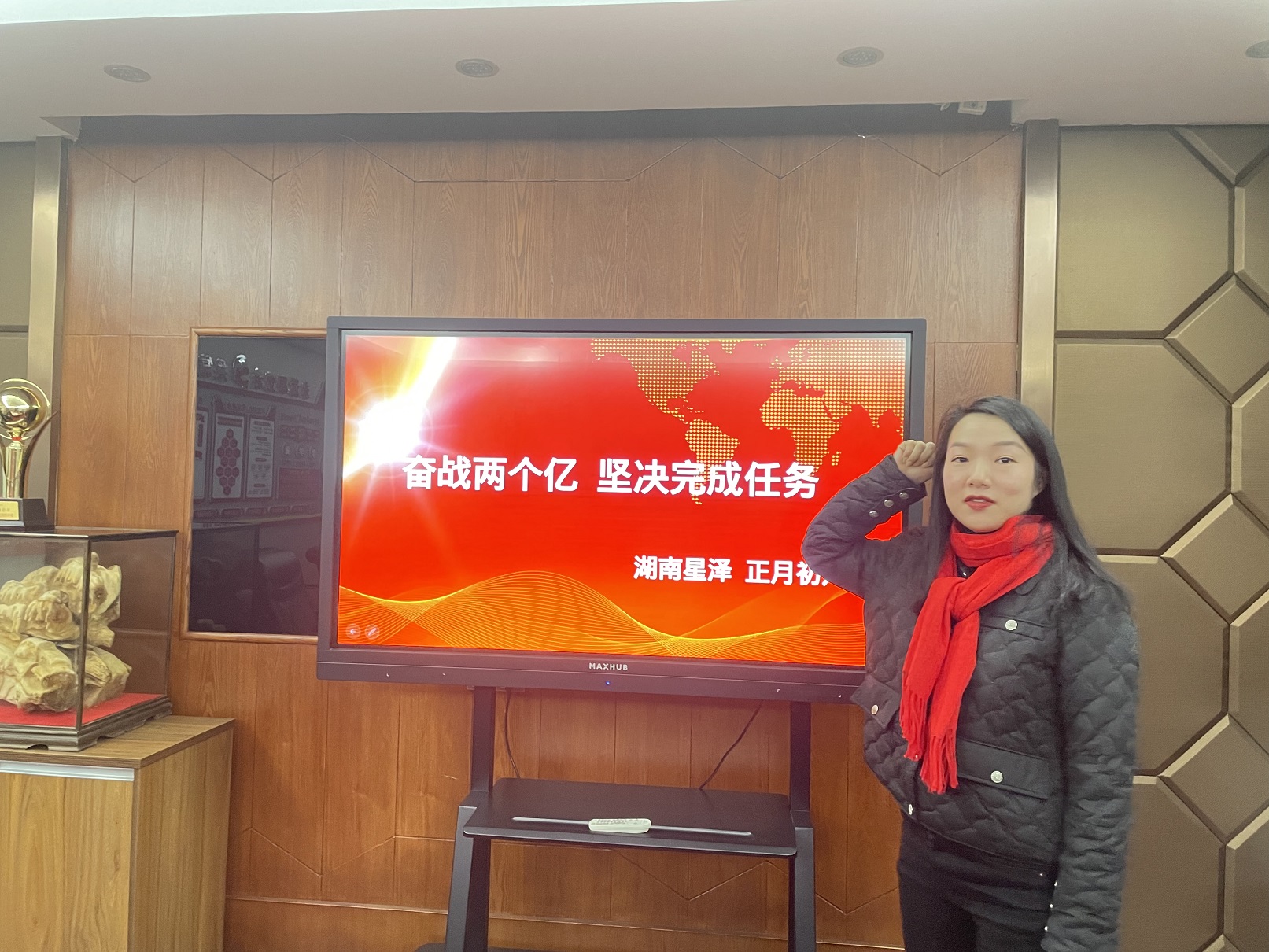 正月初八我们开工啦!伴随着雄壮的国歌声,湖南星泽 公司2023年新年茶话会正式开场,茶话会上公司宋总为每位员工派发了新年红包,每位参会人员分享了一个励志或是正能量的故事,公司总经理孙总致新年贺词并提出新年展望定下公司新年的奋斗目标,2023年公司的业绩目标为两个亿,每位员工各分得业绩任务,并纷纷上台宣誓言。