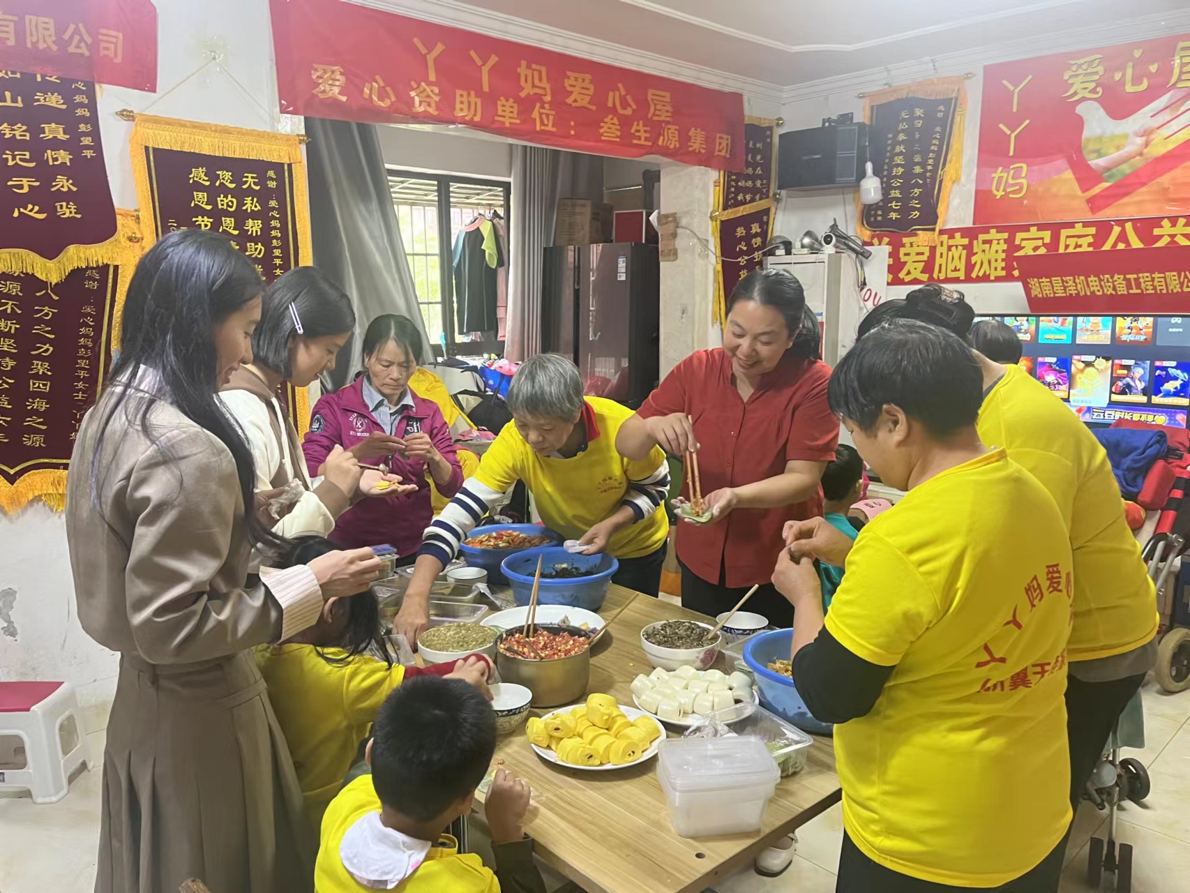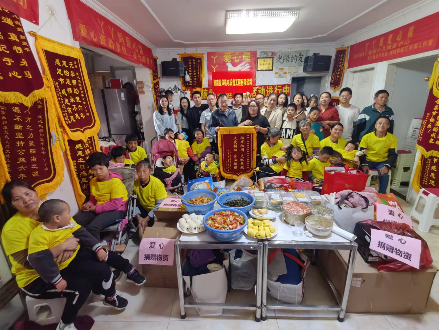 10月21日,湖南星泽 公司全体员工在孙逢春总经理的带领下,前往长沙县湘龙街道“盛地春天里”关爱脑瘫儿童公益组织“丫丫妈妈爱心屋”,看望在这里做康复治疗的“慢天使”,慰问这些困难脑瘫患儿家庭。公司为他们带来了大米、肉、抽纸、衣物、鞋子、生活用品等生活物资并和这些患儿家属一起包饺子,共进午餐,为他们献出一份自己的一份爱,将这份爱传递给小朋友们!