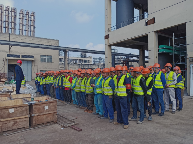 项目经理粟逵介绍钢结构平台、各种塔器罐体、各类工艺管道、电动阀门,电气仪表自动控制工艺的纷繁复杂,工程量之巨大,现场安装与生产同时进行的安全控制要求之严格,和一个烟头罚款4000元的教训,目前现场施工人员130人,因甲方设备供货进度延后还没有达到200多人施工高峰,无论条件变化,星泽这支队伍个个都是行家俚手,经验丰富的干将,对工艺管道设备安装技术轻车熟路,来之能战、战之能胜,有能力完成客户交付的任务。