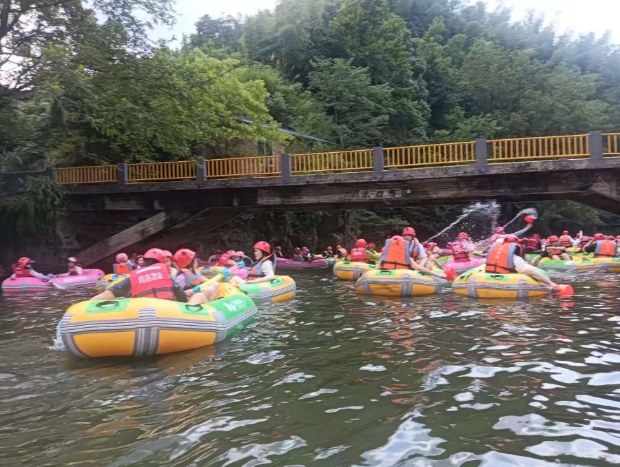 下午的重头戏是漂流。皮艇刚下水就被浪花浇成落汤鸡,大家干脆放弃“防御”,水枪、头盔、安全帽全改成武器,认识不认识的都加入混战。一个半小时后,全员湿漉漉上岸,嗓子喊哑,脸笑酸。