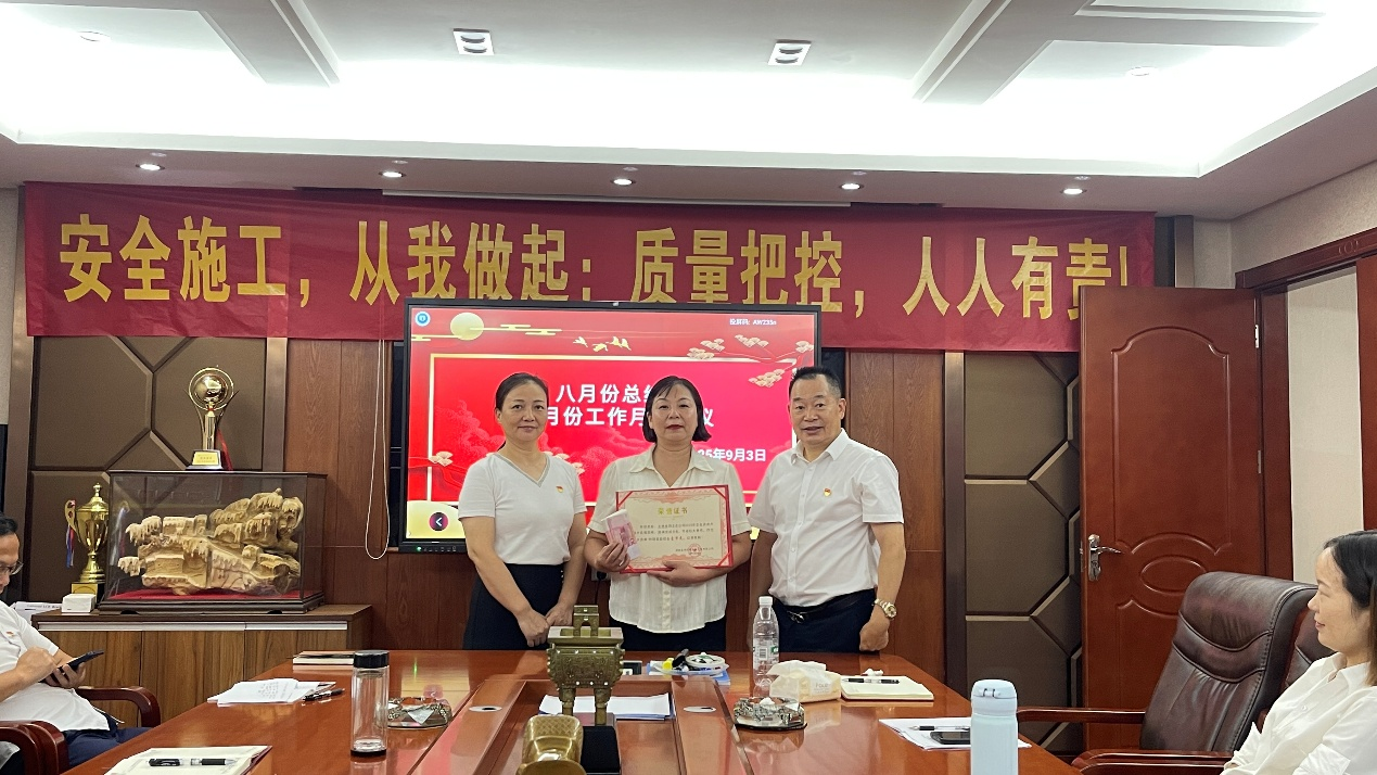 这份亮眼的 “资质成绩单”,背后是星泽机电全体员工的凝心聚力与不懈奋斗。自资质延续工作启动以来,面对材料整理繁琐、审核标准严格等挑战,星泽机电团队始终秉持 “团结拼搏、不畏艰难、敬业奉献” 的精神,加班加点梳理项目业绩、完善申报材料,以精益求精的态度确保每一项数据准确无误、每一份材料规范完整。从项目现场的业绩核查到申报流程的层层推进,每一位星泽人都以高度的责任感扛起重任,用实际行动诠释了 “专业、专注、专研” 的企业精神,为资质延续工作的圆满完成奠定了坚实基础。月度会上对办公室支主任进行了特别表彰和现金奖励。