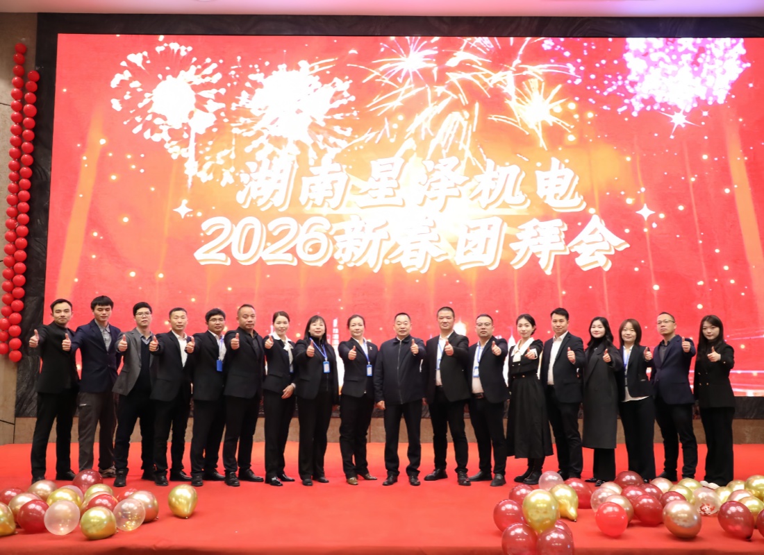 2026年2月10日,湖南星泽 机电2026年度团拜会隆重举行,公司全体同事、合作伙伴齐聚一堂,回顾2025年发展成果,表彰先进典型,共谋划2026年高质量发展蓝图,共迎新春马年到来。