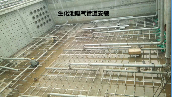 o 在生化池内安装曝气膜块支架。