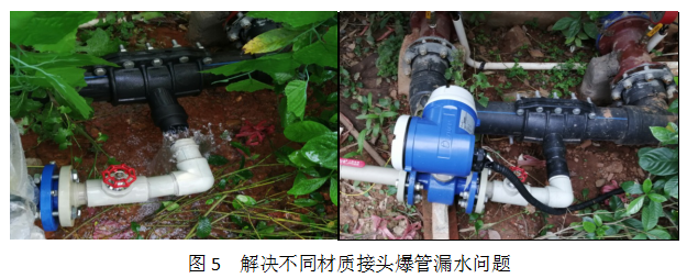 2、管类不一,现场水表安装的管道材质有多种,有铸铁管、钢管、PPR、PVC、PE等,管径从DN25-DN150不等。由于各种管道的施工工艺不一样,对现场技术人员技能水平提出了一定考验。其中值得一提的是甲方原有一处管道从PE管开了一个三通,在三通管直接熔接了PPR管,因两种不同材质膨胀系数不一样,时间一久就爆开了。我司施工技术人员经验丰富,使用PE和PPR转换接头,快速成功的解决了问题,消除了隐患。